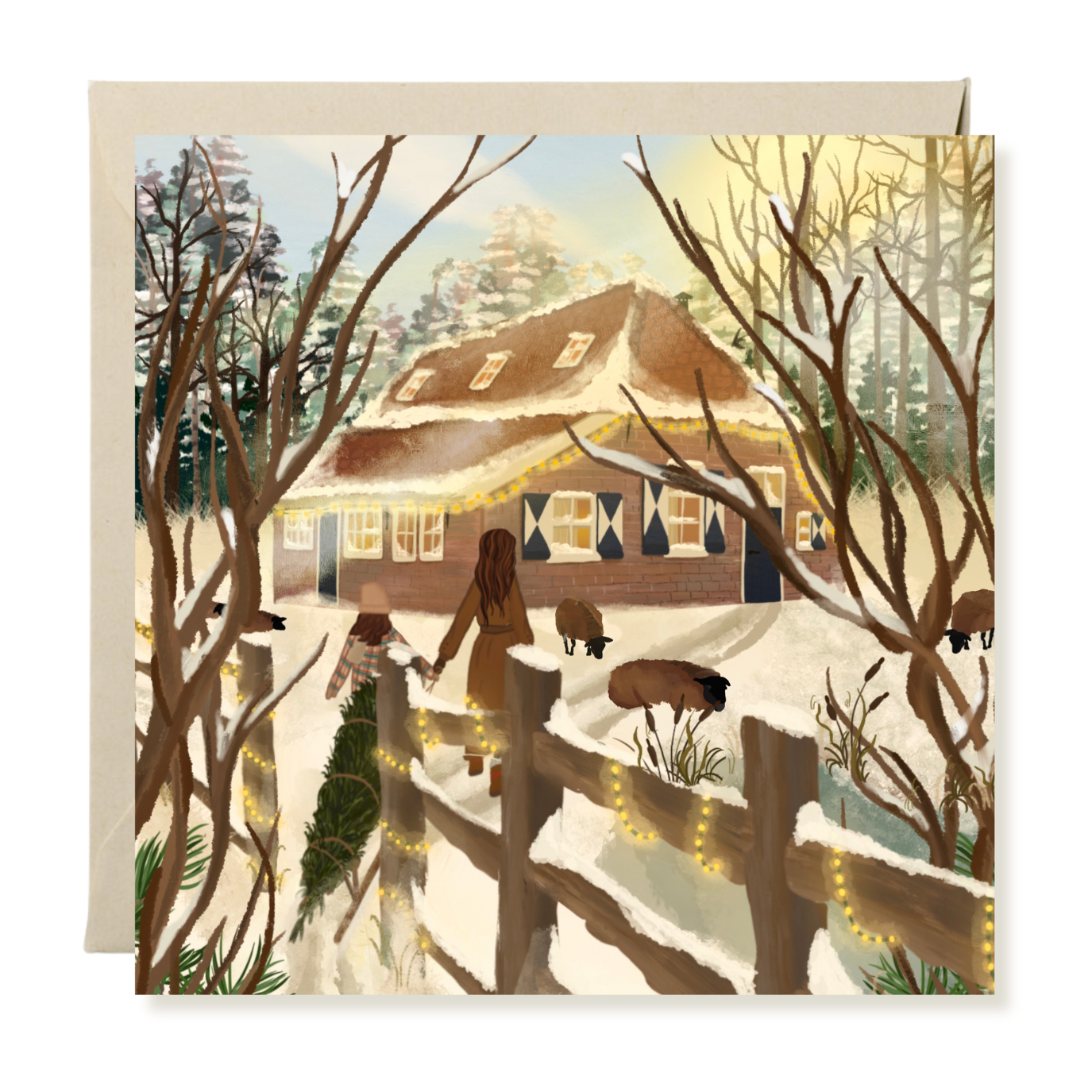 148 x 148 mm double Christmas card and envelope.